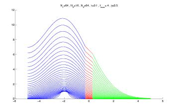 Η ασυνέχεια του συντελεστή διάχυσης προκαλεί ασυνέχεια στην ux όπως γίνεται άμεσα αντιληπτό και στις λύσεις που απεικονίζονται για συγκεκριμένα χρονικά διαστήματα στο σχήμα που ακολουθεί.